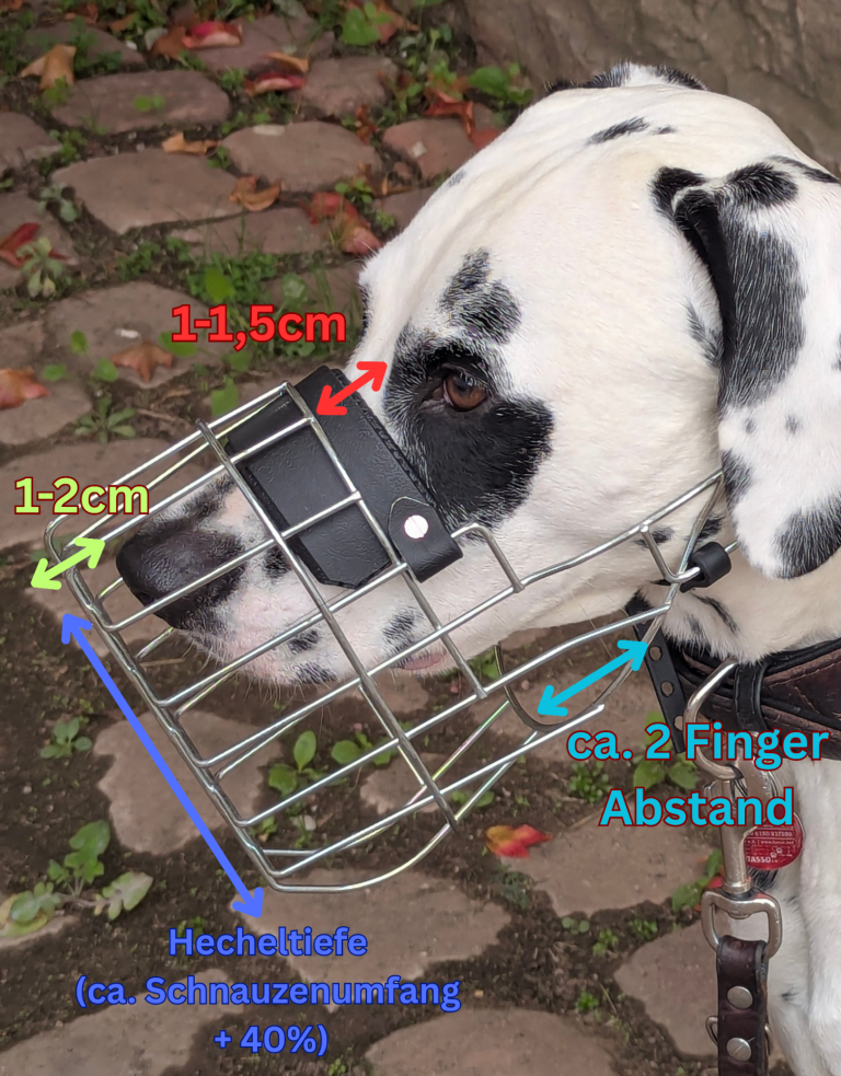 Überprüfung und Anpassung deines vorhandenen Maulkorbes. Ich schaue ob der Maulkorb richtig sitzt und sicher ist.